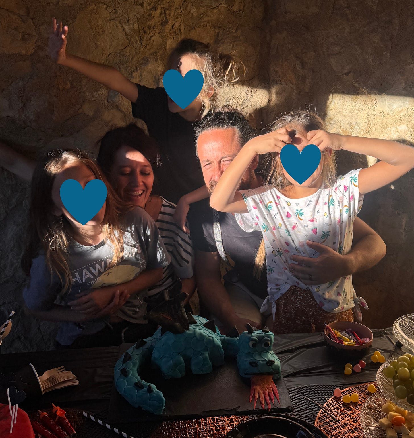 J’ai compris qu’il me manquait un rituel. Les anniversaires ont des rituels pour tout : arriver, jeu libre, jeu commun, manger le gâteau dragon, chanter, souffler les bougies, ouvrir les cadeaux, danser.